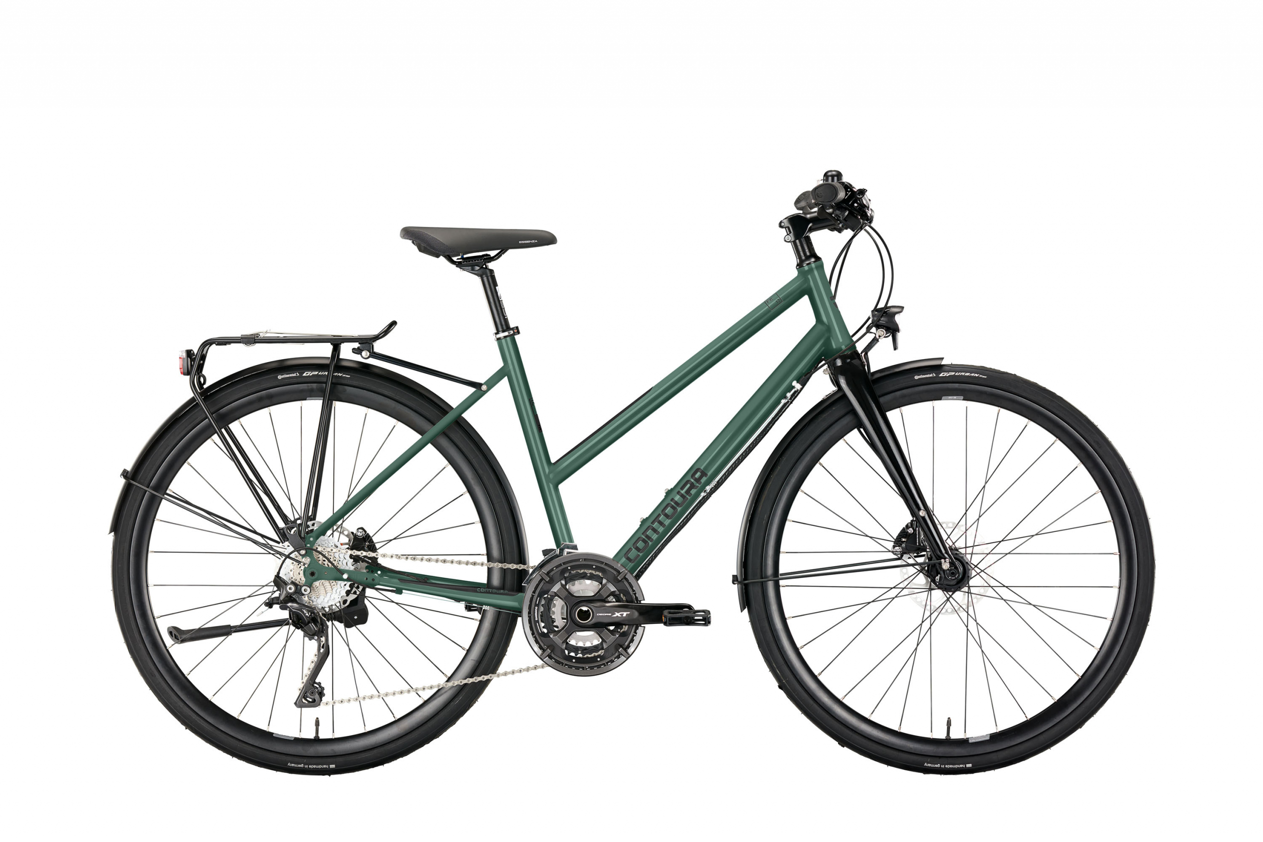 Auf ausgedehnten, schnellen Touren ist das Fe-12 ganz in seinem Element. Je länger die Tour dauert, umso mehr überzeugt es mit der langstreckentauglichen, leicht geneigten Sitzhaltung und dem gelungenen Mix aus Wendigkeit und sicherem Geradeauslauf. Der Stahlrahmen punktet dazu mit seinen technischen Eigenschaften: dem konischen Steuerrohr und den Steckachsen für bestes Steuerverhalten. Gut, dass die Disc-Bremsen so bissig sind – so bist Du länger schnell und zügelst das Tempo auf den Punkt.